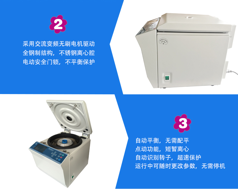 ■ 自動(dòng)平衡,無需配平,點(diǎn)動(dòng)功能,可短暫離心