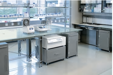 › 固定在滑輪柜上的離心機(jī)適合放置在90 cm的標(biāo)準(zhǔn)實(shí)驗(yàn)室桌面下