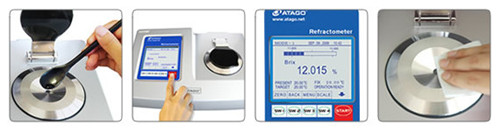 滴2-3滴樣品在棱鏡樣品槽內→按START鍵進行開始測量→閃爍3秒后測量數(shù)值表示→測量完畢后將棱鏡樣品槽進行擦拭工作。