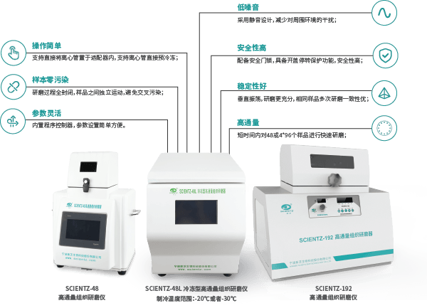 SCIENTZ-48L內(nèi)置壓縮機(jī),支持冷凍研磨,有效避免因研磨件摩擦生熱對(duì)樣品核酸及蛋白造成的影響。