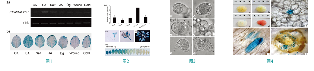 1、YE S, JIANG Y等人利用基因槍系統(tǒng)通過提高楊樹轉(zhuǎn)錄因子PtoWRKY60組成型表達提高楊樹對潰瘍病菌SACC的抗性研究結果。 【圖1、2】