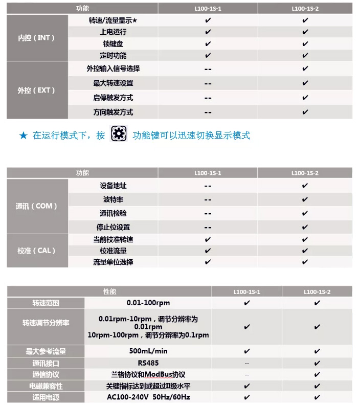 L100-1S具有流量顯示和校準(zhǔn)功能,可提供高分辨率的轉(zhuǎn)速控制,實(shí)現(xiàn)超高精度、更寬泛的流量調(diào)節(jié)范圍。