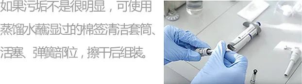 > 先將移液器下半支拆卸,用干凈的紗布或無塵紙將活塞上原有的潤(rùn)滑油抹去